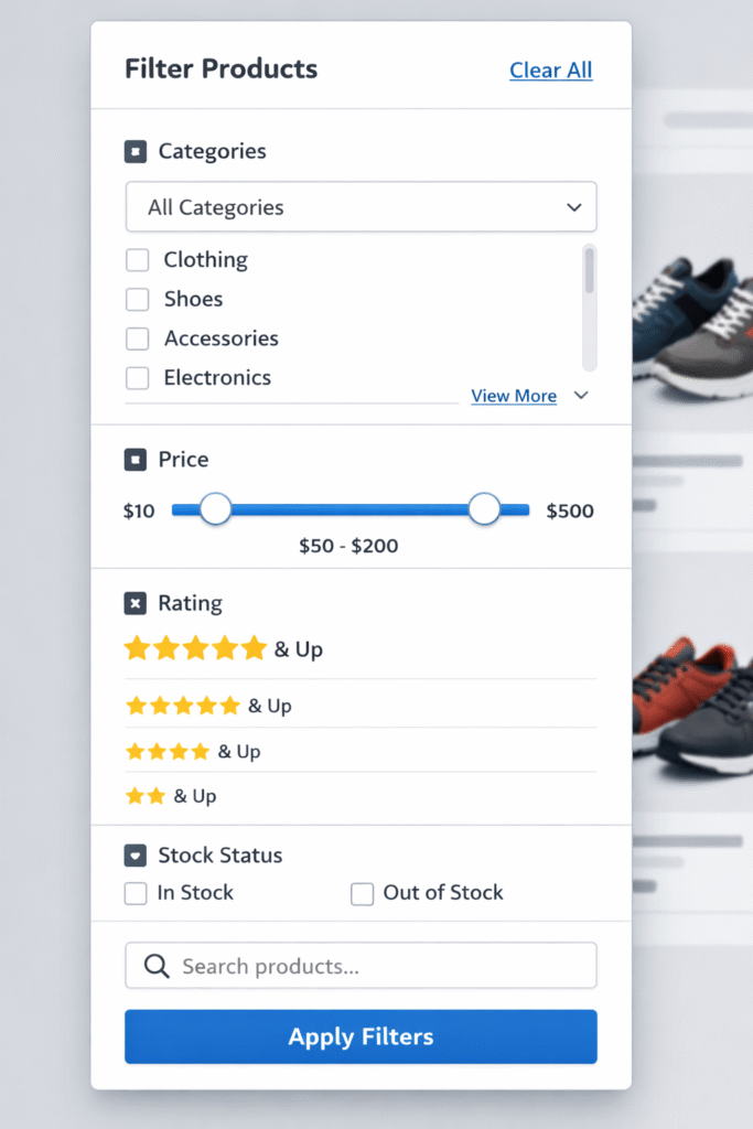 WooCommerce Advanced Filters kaddora is a modern, AJAX-powered product filtering plugin designed to improve the shopping experience on WooCommerce stores. The plugin allows customers to filter products instantly without page reloads using advanced filters such as: