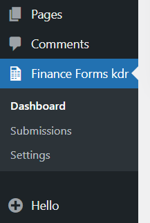 Navigate to: WP Admin β Finance Forms kdr β Submissions
